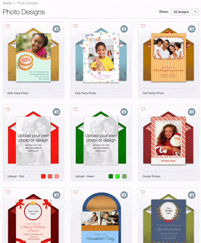 Download the free Punchbowl app on your iOS or Android device. Once inside, locate the Photo Designs category to browse the available templates, and choose one that fits your theme.