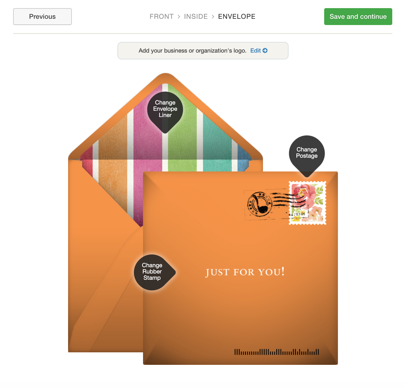 Add extra charm to your eCard by customizing the Envelope Liner, Postage Stamp, and Rubber Stamp.