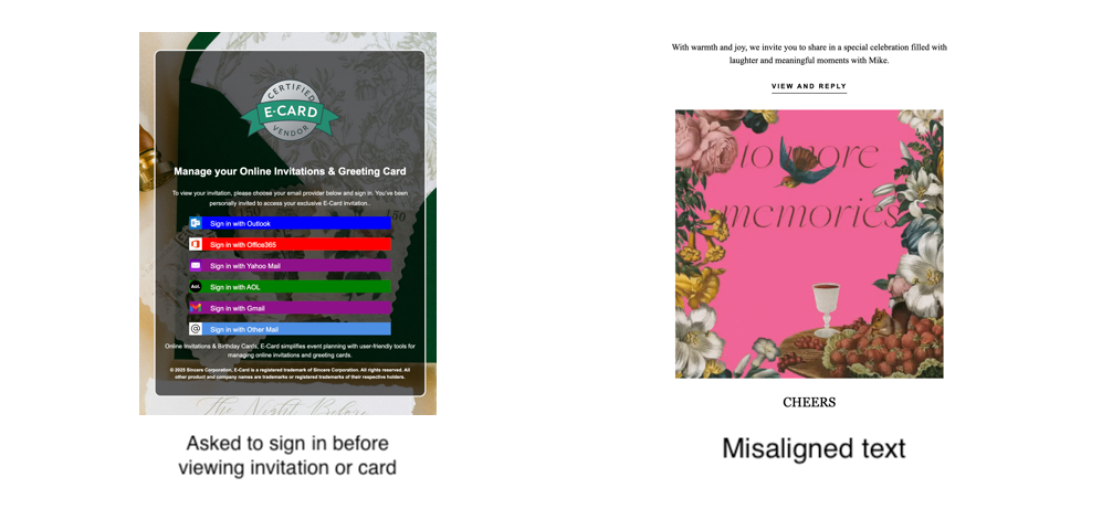 - Asked to sign in before viewing invitation or card